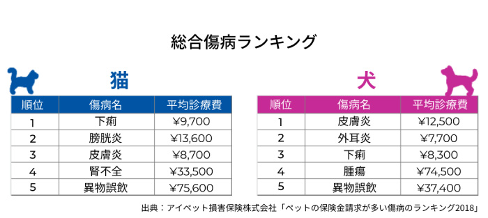 ペットの消化器の健康維持のために、下の表をご参照ください。