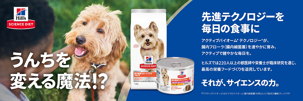 ヒルズの「腸の健康サポートプラス」は、ヒルズ独自の「アクティブバイオーム+テクノロジー」で、