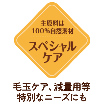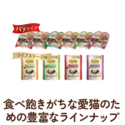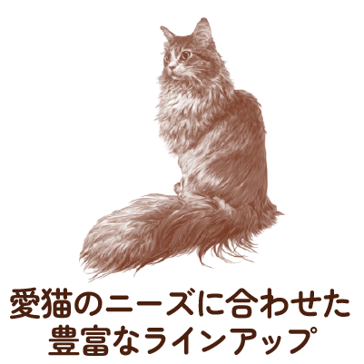 猫のライフステージ、ライフスタイル、好き嫌いがある、毛玉をよく吐くなどのお悩み別など、愛猫のニーズに合わせて選べる食事です。
