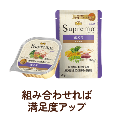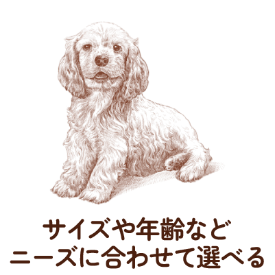 体のサイズやライフステージ、ライフスタイル、ダイエットなどのお悩みなど、愛犬のニーズに合わせて選べる食事です。