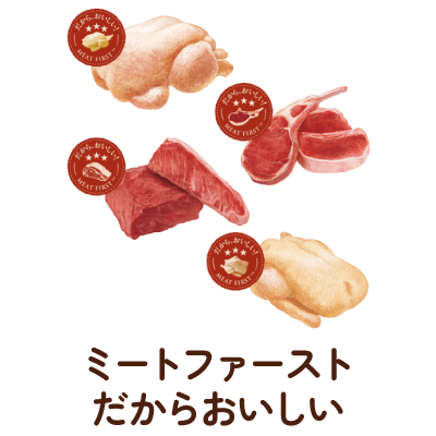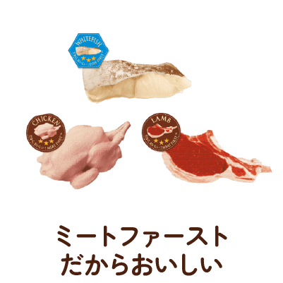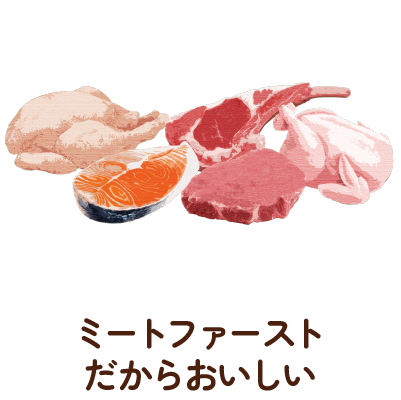 犬のネイチャー(本質)に着目し、肉食の犬が野生だった頃から食べている食事を、最新の栄養学と技術をもって、厳選自然素材を使用して実現しました。愛犬の本能が求めるおいしさを実感してください。
