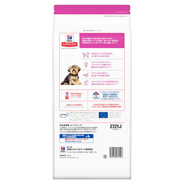 1~6歳までのトイプードル、チワワやミニチュアダックスフンドといった小型犬種に対応。消化に良い高品質な自然素材を、小型犬が食べやすい小さな粒に凝縮しました。高品質なたんぱく質を使用し、引き締まった筋肉を維持。