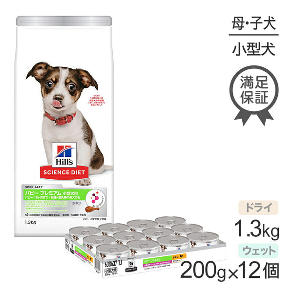 ヒルズ サイエンス・ダイエット パピープレミアム 小型犬用 12ヶ月まで 子犬/妊娠・授乳期の母犬 チキン ドライ 1.3kg + チキン ウェット 200g×12 (犬・ドッグ)