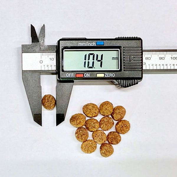 粗タンパク質:22.5%以上、粗脂肪:13%以上、粗繊維:4.7%以下、水分:9%以下、灰分:8.6%以下、亜鉛:150mg/kg、ビタミンE:262IU/kg、オメガ3脂肪酸*:0.8%、オメガ6脂肪酸*:1.8%、ヨウ素:1.9%(*AAFCOの栄養成分表では必須栄養素として認められていません)