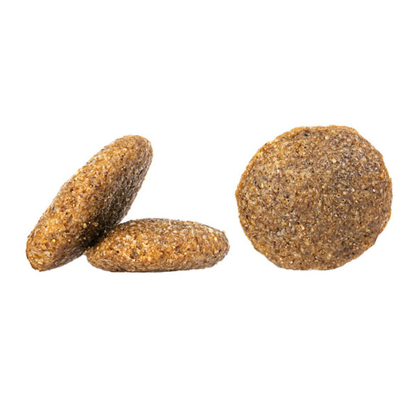 ラムプロテイン*(21%)、米粉(21%)、コーン粉、コーン、ライスプロテイン*(9%)、ポルトリー脂肪、加水分解レバー、ビートファイバー*、ひまわり油、アップルポマス*(1%)、菜種油、乾燥全卵、塩化ナトリウム、サッカロマイセス・セレビシエ*、塩化カリウム、海藻*(0.15%)、亜麻仁(0.15%)、ミルクシスル、アーティチョーク、タンポポ、ショウガ、カンバ葉、ネトル、カモミール、コリアンダー、ローズマリー、セージ、リコリス根、タイム(ハーブ:0.14%)*、緑イ貝*(0.05%)、イースト抽出物*、ビタミン類(ビタミンA、ビタミンD3、ビタミンE、ビタミンB1、ビタミンB2、ビタミンB6、ビオチン、Dパントテン酸カルシウム、ナイアシン、ビタミンB12、コリン、葉酸)、ミネラル類(鉄、銅、亜鉛、マンガン、ヨウ素酸カルシウム、亜セレン酸ナトリウム)、天然由来トコフェロール(酸化防止剤として) (*乾燥)