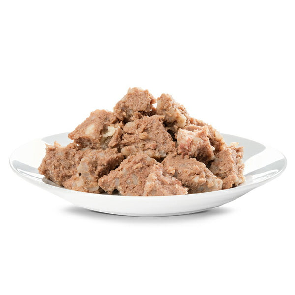 HAPPY DOG VET ストルバイト(尿石ケア)ウェット缶は、ストルバイト結石症の愛犬のために成分調整された食事療法食です。マグネシウムとリンの含有量を制限し、メチオニンなど尿pH値を酸性化する原材料を使用したレシピで、尿のpH値を弱酸性に維持します。また、ナトリウム含有量をやや高めに調整することで飲水量を確保し、尿量の増加を促すことによってストルバイト結晶の尿路からの排出を促します。