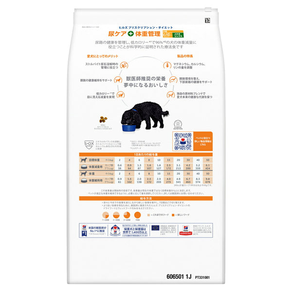 この製品は、ミネラルを調整し、ストルバイト尿石の溶解時の管理及びストルバイトとシュウ酸カルシウム尿石の形成を抑制します。また、栄養素の調整により、肥満に伴う併発疾患など、10種類の症状に対応した減量フードです。