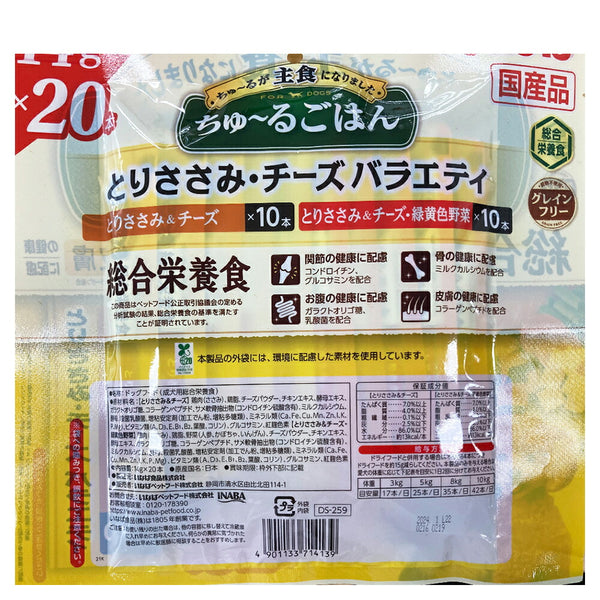 【メール便】いなば ちゅ~るごはん 総合栄養食 成犬用 とりささみ・チーズバラエティ 14g×20本 (犬・ドッグ)[M便 1/1]