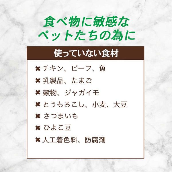 食物アレルギーに配慮し、動物性タンパク質を1種類に限定した総合栄養食。