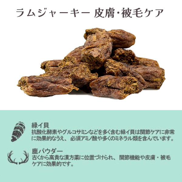 ラムを使用したヘルスケアトリーツ。 緑イ貝、鹿パウダー等サプリメント配合で、皮膚・被毛に効果的です。