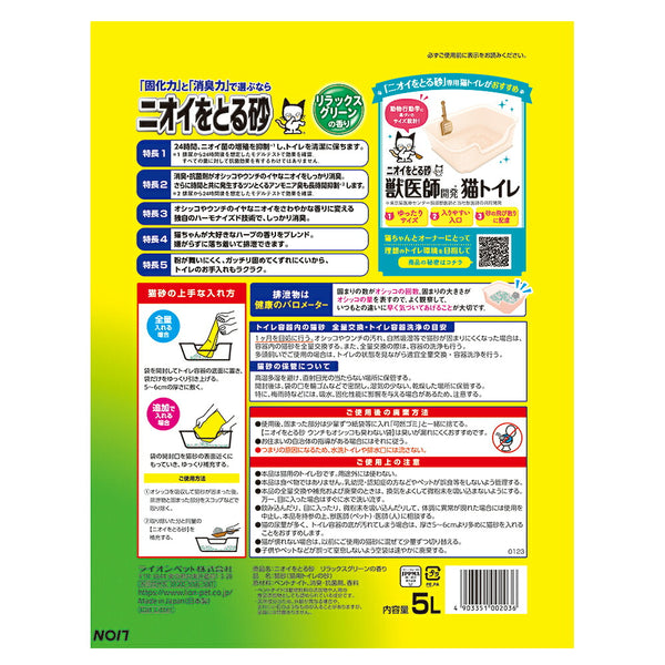 ライオン ニオイをとる砂 リラックスグリーンの香り 5L (猫・キャット)