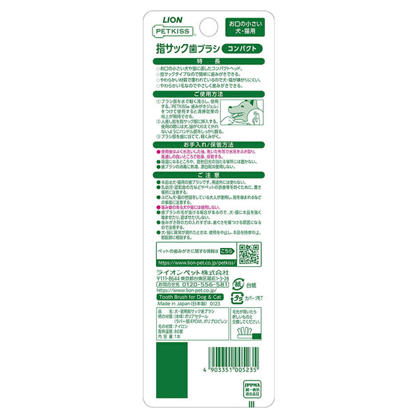 【メール便】ライオン PETKISS 指サック歯ブラシ コンパクト 1本 (犬猫兼用)[M便 1/8]