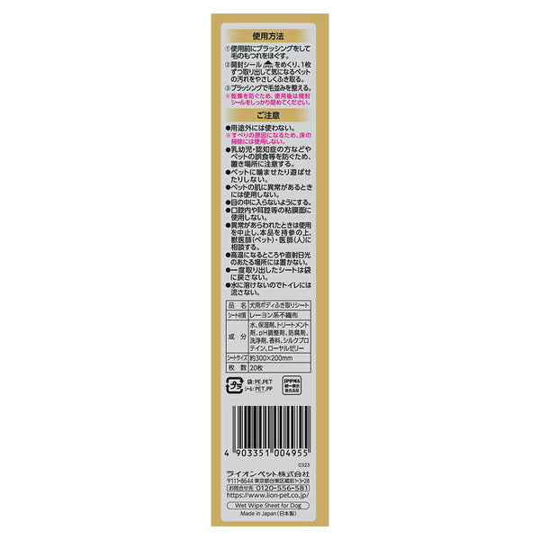 ライオン Quick & Rich トリートメントイン シャンプータオル 愛犬用 フォレストグリーン 20枚 (犬・ドッグ)