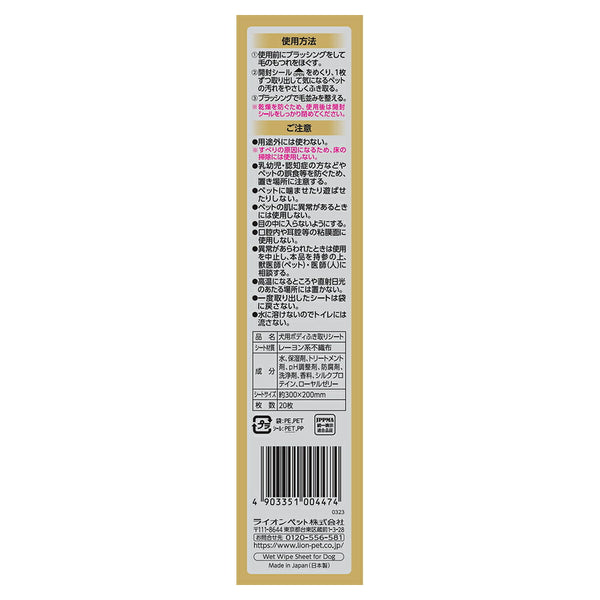 ライオン Quick & Rich トリートメントインシャンプータオル 愛犬用 リフレッシュサボン 20枚 (犬・ドッグ)