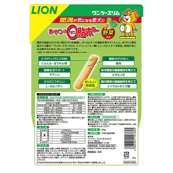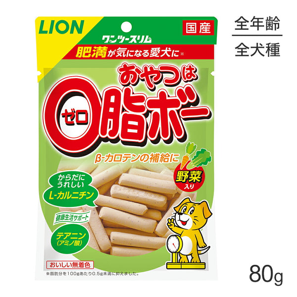 【メール便】ライオン ワンツースリム おやつは0脂ボー 野菜入 80g (犬・ドッグ)[M便 1/2]