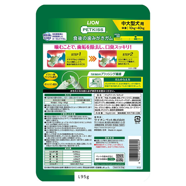【メール便】ライオン PETKISS 食後の歯みがきガム 中大型犬用 12本 (犬・ドッグ)[M便 1/2]