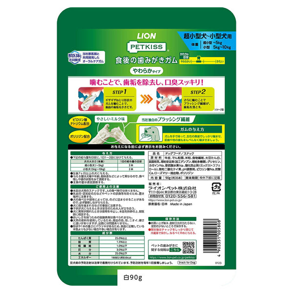 【メール便】ライオン PETKISS 食後の歯みがきガム やわらかタイプ 超小型犬~小型犬用 90g (約35本) (犬・ドッグ)[M便 1/2]