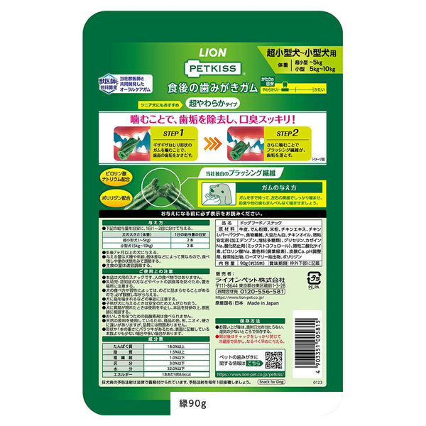 【メール便】ライオン PETKISS 食後の歯みがきガム 超やわらかタイプ 超小型犬~小型犬用 90g (約35本) (犬・ドッグ)[M便 1/2]
