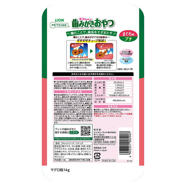 【メール便】ライオン PETKISS 猫ちゃんの歯みがきおやつ まぐろ味 プチ 14g (猫・キャット)[M便 1/6]