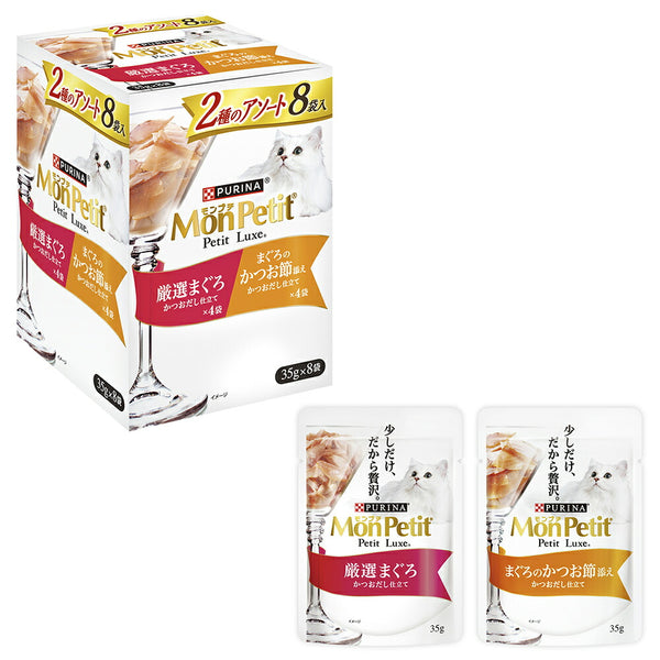 ネスレ モンプチ プチリュクス 2種のアソート 厳選まぐろ&まぐろのかつお節添え パウチ ウェット 35g×8袋 (猫・キャット)[正規品]