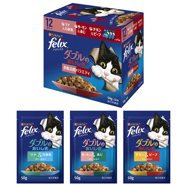 ネスレ ピュリナ フィリックス ダブルのおいしさ 成猫 お魚お肉バラエティ ウェット ウェット パウチ 50g×12袋 (猫・キャット) [正規品]