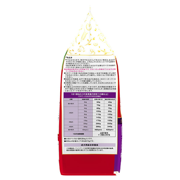 ●シニア犬でも食べやすいサクサク粒。小粒。