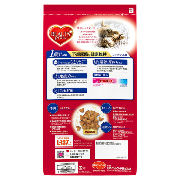 ビューティープロ キャット 下部尿路の健康維持 1歳から フィッシュ味 1.4kg (猫・キャット)