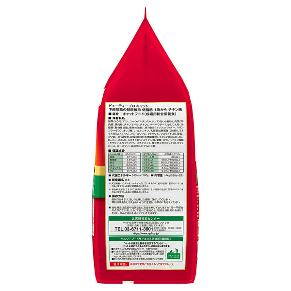 ビューティープロ キャット 下部尿路の健康維持 低脂肪 1歳から チキン味 1.4kg (猫・キャット)