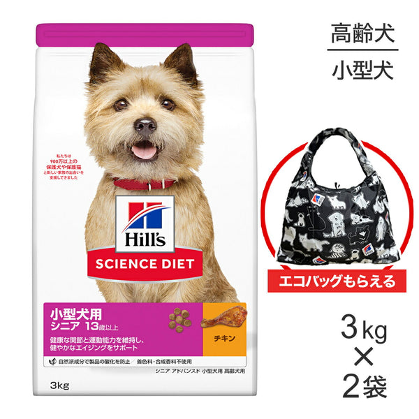 【3kg×2袋】ヒルズ サイエンス・ダイエット 小型犬用 シニア アドバンスド 13歳以上 高齢犬用 チキン エコバッグおまけ付 (犬・ドッグ)