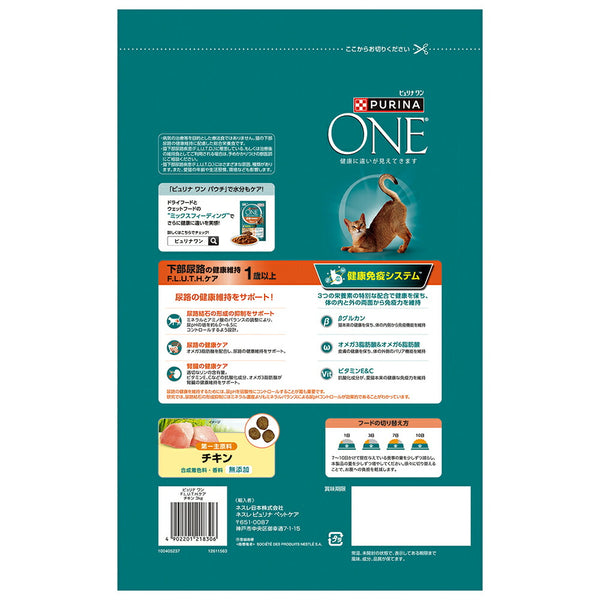 ネスレ ピュリナ ワン キャット 下部尿路の健康維持 F.L.U.T.H.ケア 1歳以上 成猫用 チキン(3kg×4)+おやつ 免疫ケア まぐろペースト(14g×15)のおまけ付商品です。