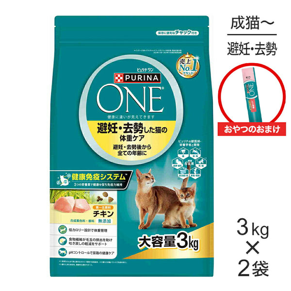 【3kg×2袋】ネスレ ピュリナ ワン キャット 避妊・去勢した猫の体重ケア チキン + おやつ 免疫ケア まぐろペースト 10本 おまけ付 (猫・キャット)[正規品]