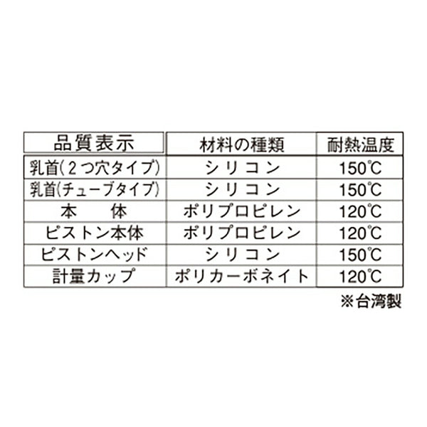 ●計量カップ付き、乳首2種類付き(2つ穴タイプ・チューブ型タイプ)