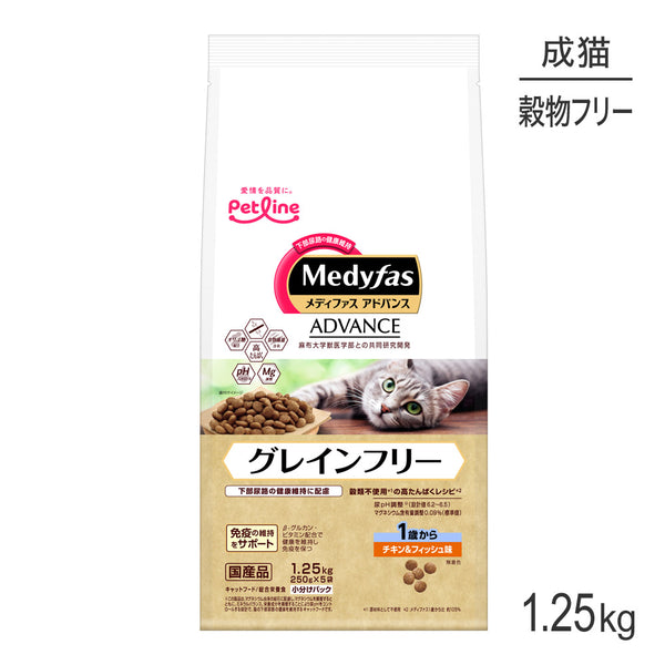 ペットライン メディファスアドバンス グレインフリー 1歳から チキン&フィッシュ味 1.25kg (250g×5) (猫・キャット)