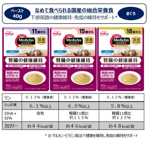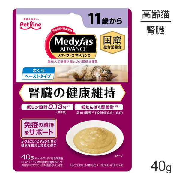【メール便】ペットライン メディファスアドバンス 腎臓の健康維持 11歳から まぐろ パウチ ウェット 40g (猫・キャット)[単品][M便 1/4][単品]