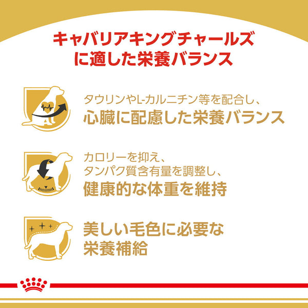キャバリア キング チャールズ スパニエルは心臓の健康維持に配慮が必要な犬種です。また体重の増加は心臓の負担を増やす原因になります。心臓の健康維持に必要な栄養素を適切に配合するなど、ロイヤルカナン独自の犬種ごとに最適な栄養バランスで愛犬の健康をサポートします。