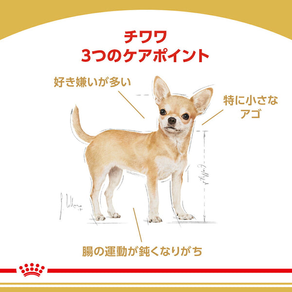 チワワは最もサイズが小さな犬種で、顎も小さく食欲にムラがあります。嗜好性を高め、少ない食事量を考慮し、高消化性のタンパク質を使用するなど、ロイヤルカナン独自の犬種毎に最適な栄養バランスで、愛犬の健康をサポートします。