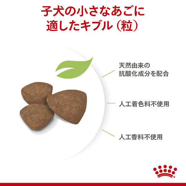 生後10ヶ月までの短い成長期に必要な高いエネルギー要求量を満たす特別な栄養設計で、小型犬の子犬の成長をサポートします。