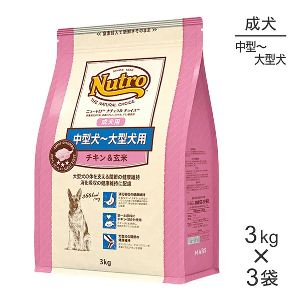 【3kg×3袋】ニュートロ ナチュラルチョイス プレミアムチキン 中型~大型犬 成犬用 チキン&玄米 (犬・ドッグ)[正規品]