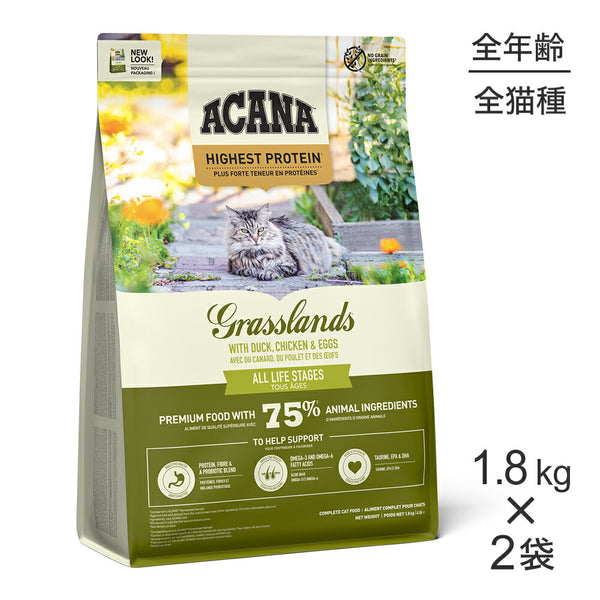【1.8kg×2袋】アカナ ハイエストプロテイン グラスランドキャット (猫・キャット)[正規品]