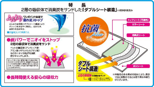 ●2層の吸収体でサンドした消臭炭のパワーで、嫌なニオイをストップ