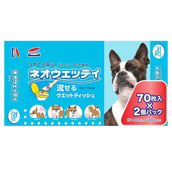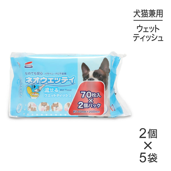 【70枚×2個×5袋】コーチョー ネオウェッティ 流せるウエットティッシュ (犬猫兼用)