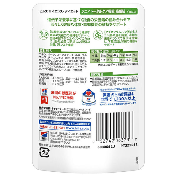 【85g×48袋】ヒルズ サイエンス・ダイエット ウェット シニアトータルケア機能 7歳以上 高齢猫用 チキン パウチ (猫・キャット)