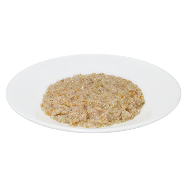 鶏ささみのミンチにすりおろした野菜を加え、食べやすいやわらかさに仕上げました。高齢期の健康に配慮してグルコサミン、EPA・DHA配合。