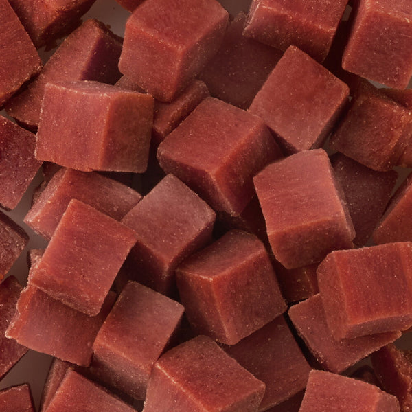 鶏肉と鶏レバーをベースにしたひとくちサイズの犬用スナックです。お散歩時やお出かけ時に食べ切れる15gの少量パックなので、持ち歩きに便利です。べたつかず食べやすいやわらかさに仕上げています。保存料、酸化防止剤、着色料は使用していません。