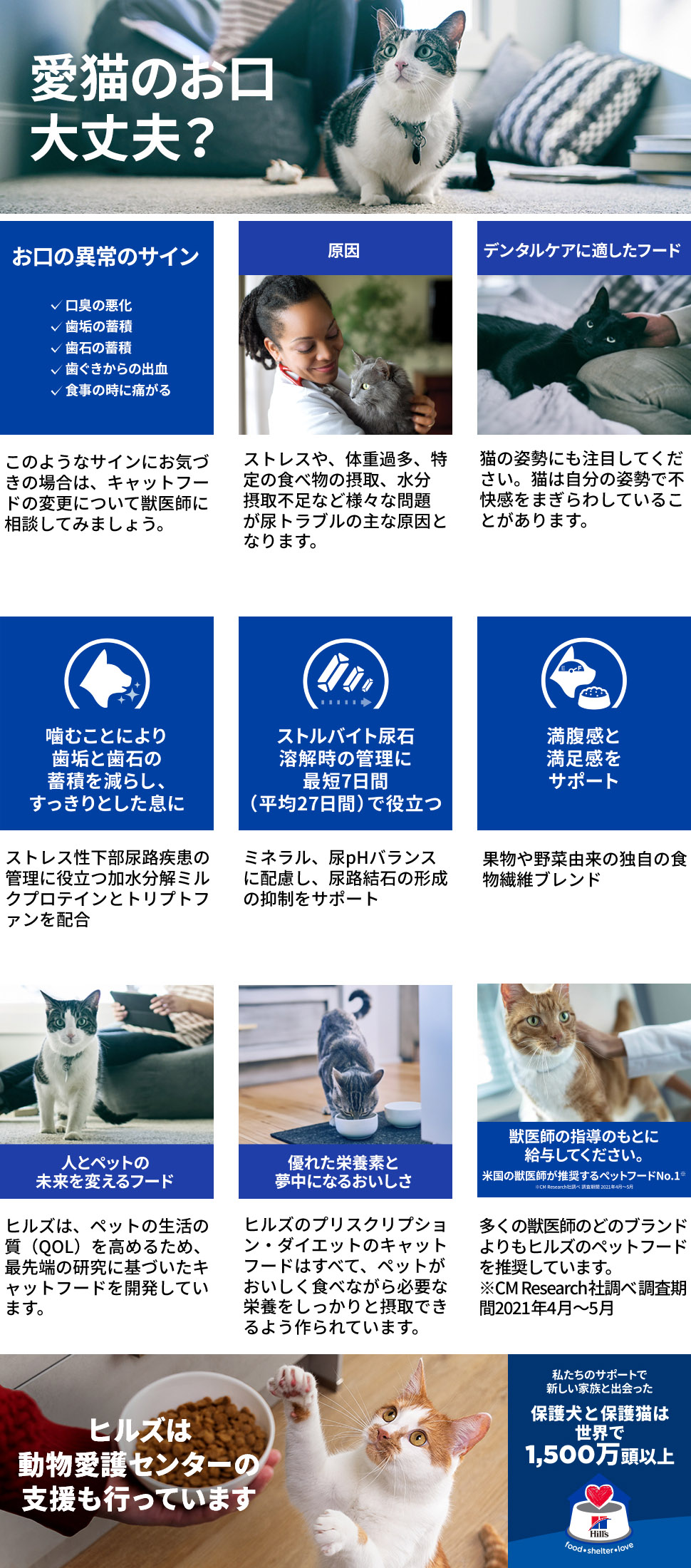 ペットも人と同じようにデンタルケアが必要です。 唾液や食物が歯に蓄積し、細菌が増殖し、歯垢(プラーク)となりそのまま放置されると長期にわたり口腔衛生上の問題を引き起こす可能性があります。歯周病とともに引き起こされる感染症は腎臓、心臓、および代謝系に影響を及ぼすことが最近の研究でわかっています。