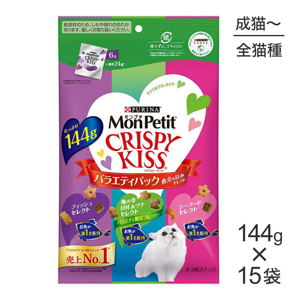 【144g×15袋】ネスレ モンプチ クリスピーキッス バラエティパック 魚介の旨みセレクト (猫・キャット)[正規品]