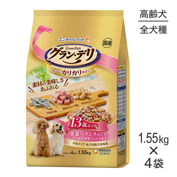 【1.55kg×4袋】ユニ・チャーム グラン・デリ カリカリ仕立て 13歳以上用 栄養バランスセレクト ビーフ・緑黄色野菜・ささみ・小魚入り 小粒 (犬・ドッグ)