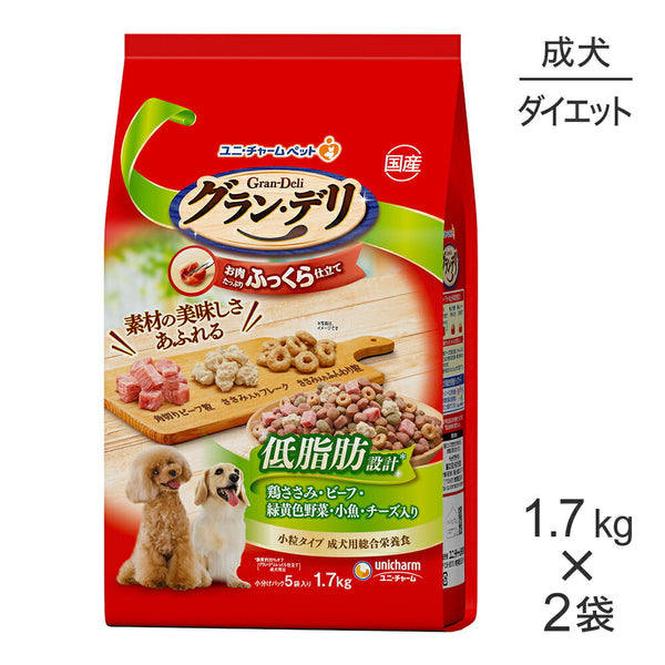 【1.7kg×2袋】ユニ・チャーム グラン・デリ ふっくら仕立て 低脂肪 成犬用 鶏ささみ・ビーフ・緑黄色野菜・小魚・チーズ入り 小粒 (犬・ドッグ)