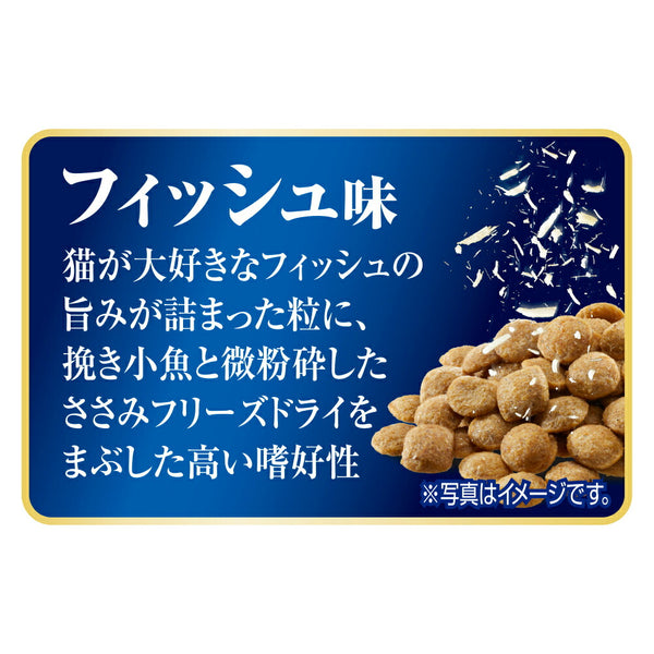 ●猫が大好きなフィッシュの旨みが詰まった粒に、挽き小魚と微粉砕したささみフリーズドライをまぶした高い嗜好性。