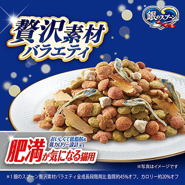 【1.1kg×6袋】ユニ・チャーム 銀のスプーン 贅沢素材バラエティ 肥満が気になる猫用 成猫用 まぐろ・かつお・ささみ・野菜味 (猫・キャット)